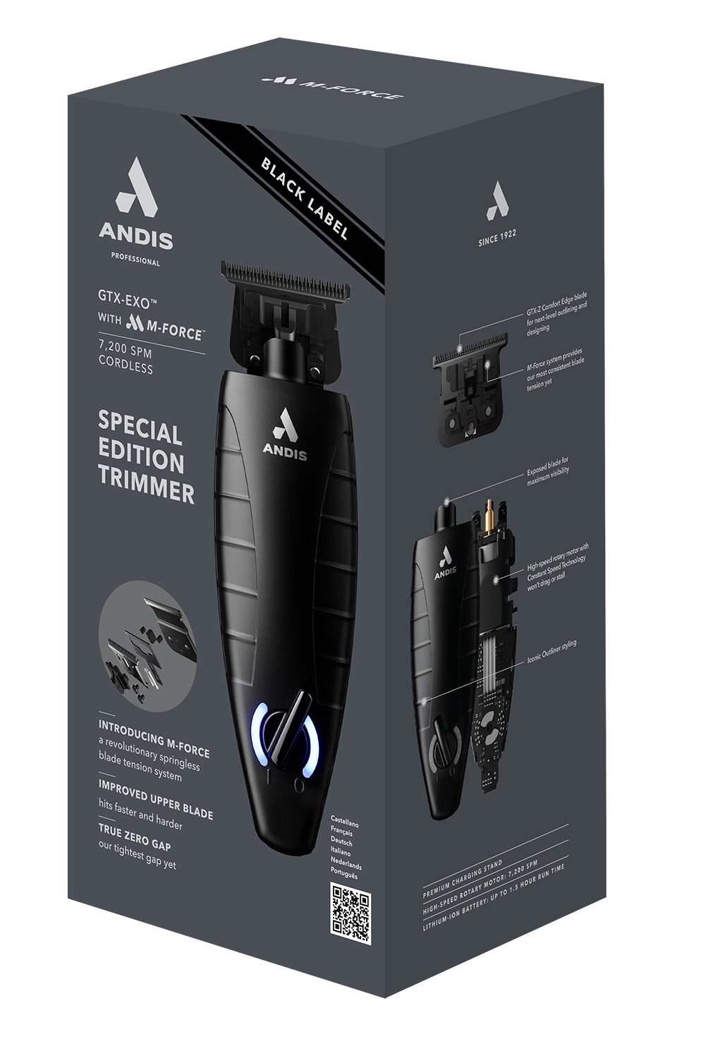 Experience the power and precision of the Andis GTX-EXO Black Label M-Force Special Edition Li Trimmer.